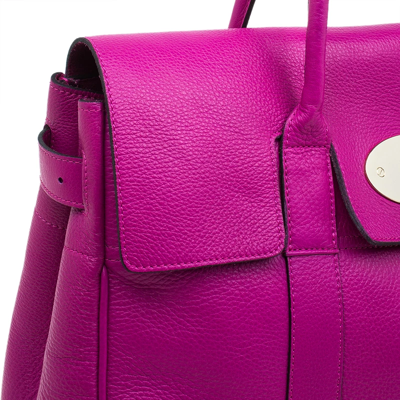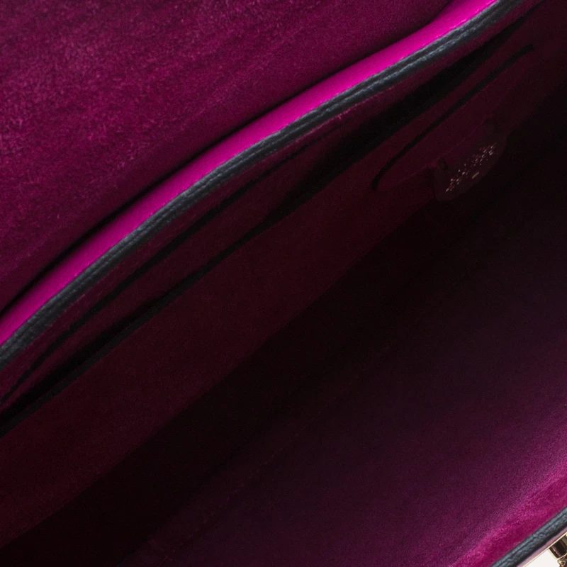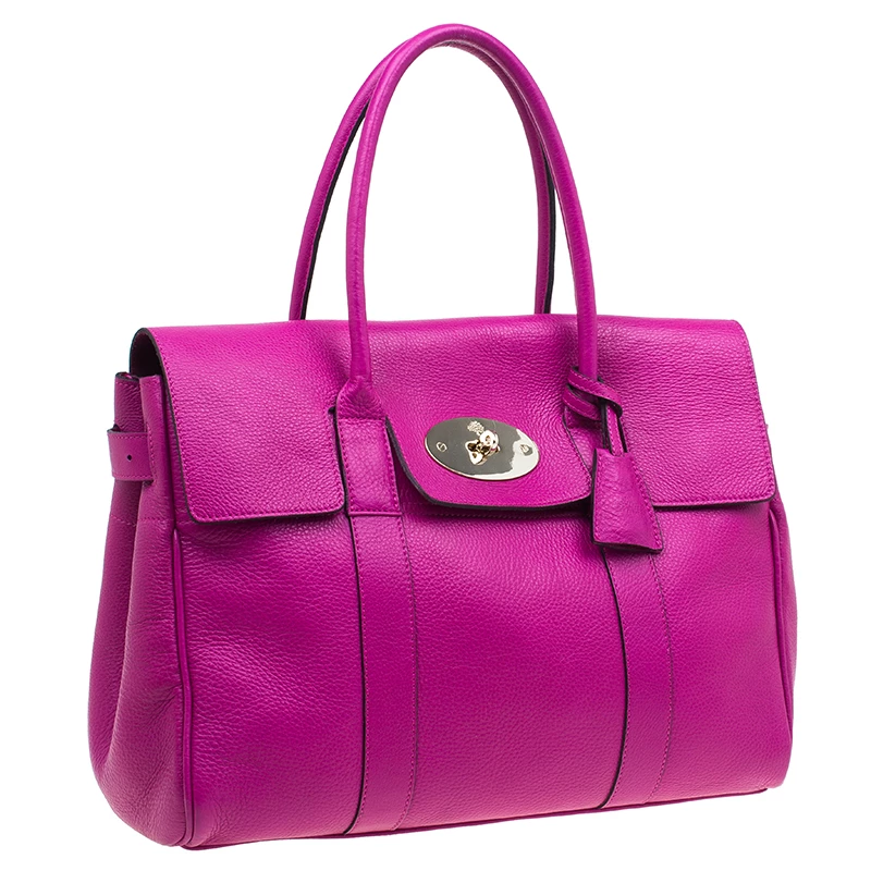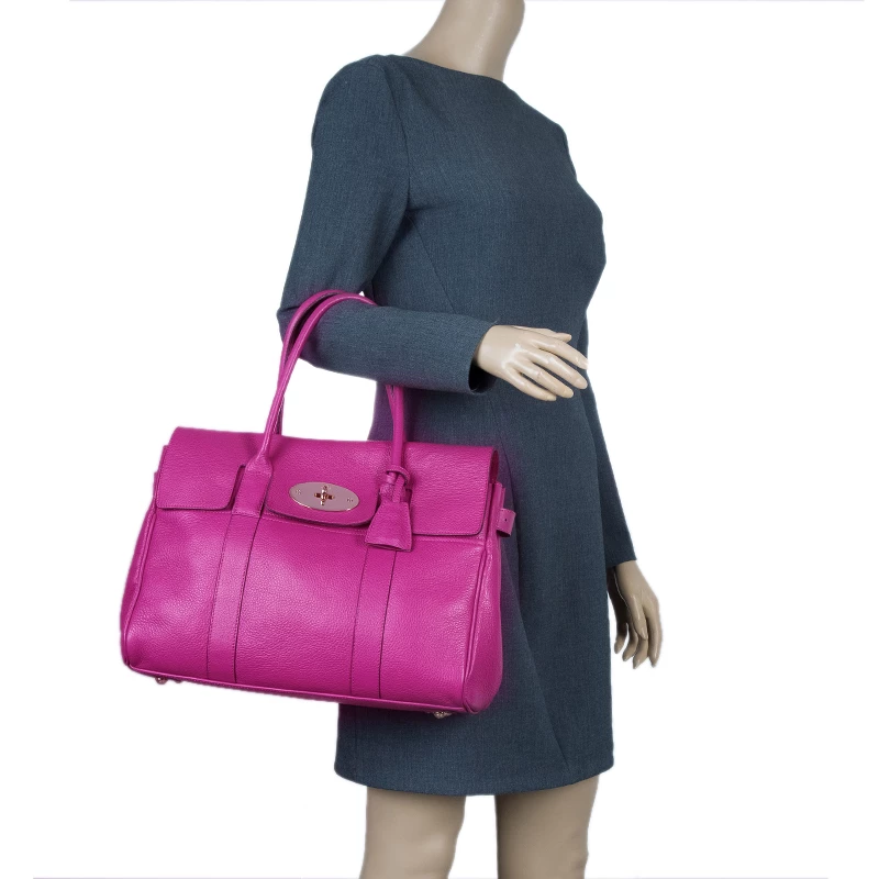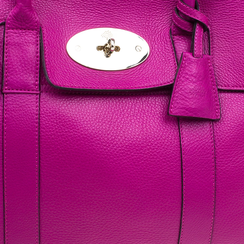This celebrity coveted Bayswater handbag by Mulberry is timeless. This version is crafted from bright pink pebbled leather that features the well known Postman’s lock closure in gold-tone hardware, rolled leather handles and a leather tag. The spacious suede lined interior features a zip pocket and two patch pockets.