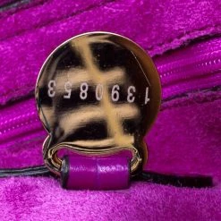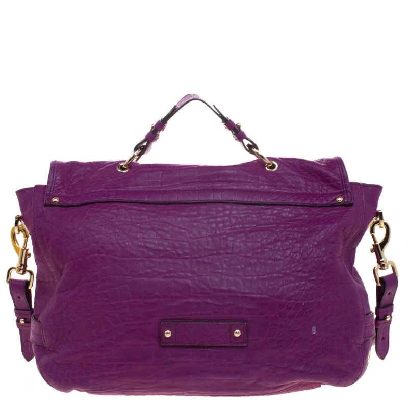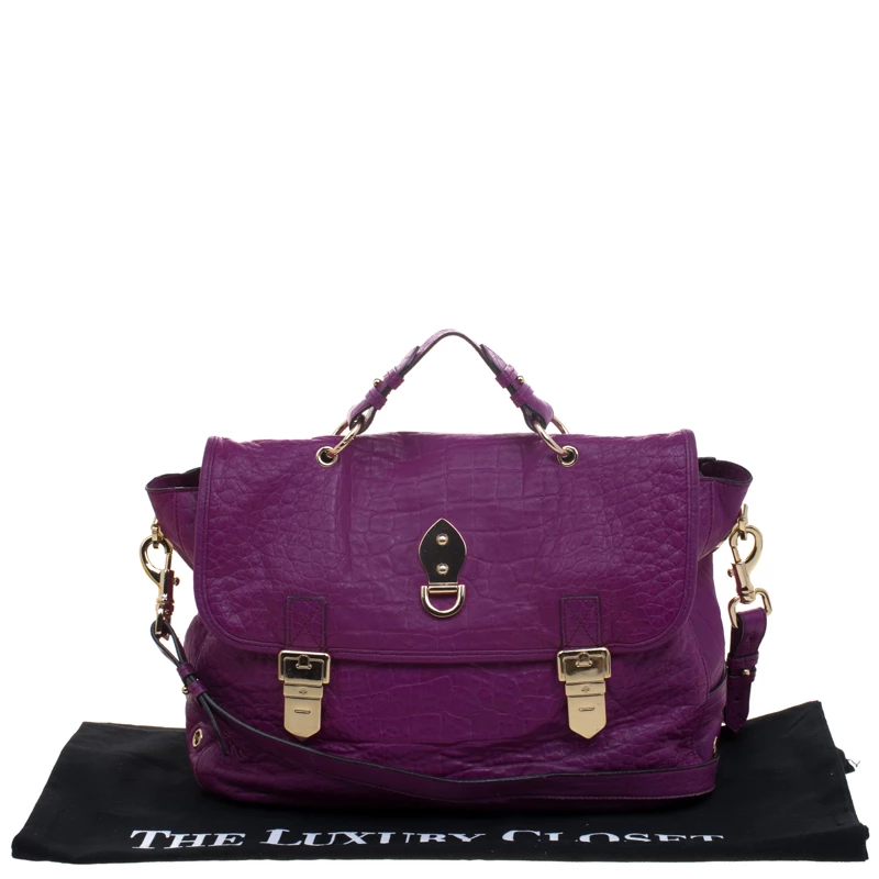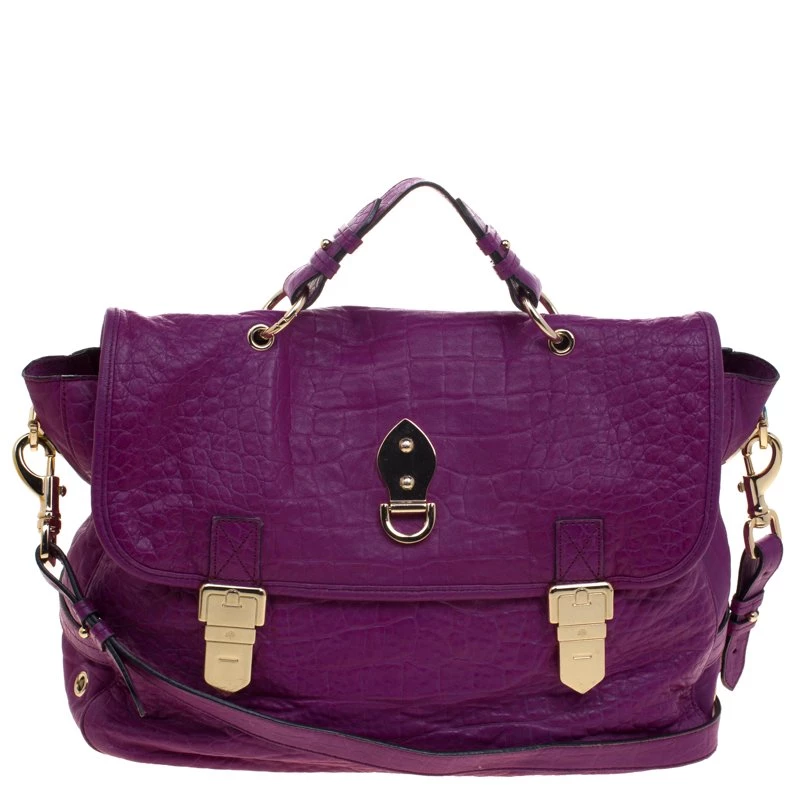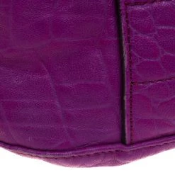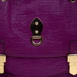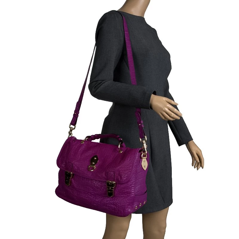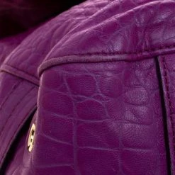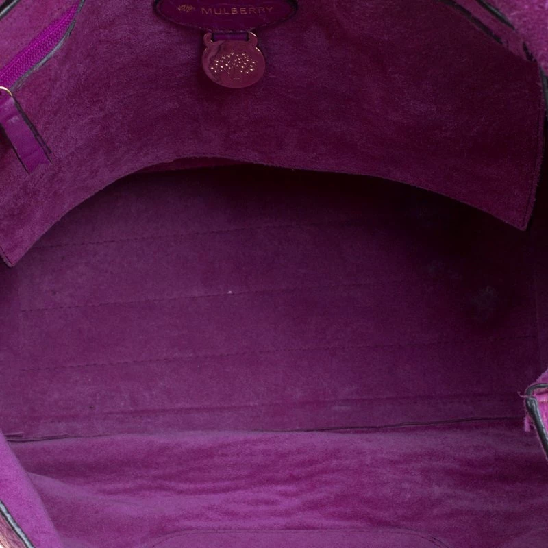 Fetch a classy look with this impeccable construction from the house of Mulberry. Crafted in exotic purple croc leather, the ‘Tillie’ satchel showcases a brilliant play of gold tone hardware. With a belted top handle and an adjustable shoulder strap, the bag opens to a suede lined interior that houses a flap and zip pocket to secure your belongings.