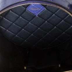 This versatile and practical trunk bag from Mulberry was is stunning. Crafted meticulously from croc-embossed leather, it comes in a lovely shade of purple. It has a circular silhouette, zip closure, brand logo in the front and a long shoulder strap. It has a leather-lined interior and is finished with gold-tone hardware.