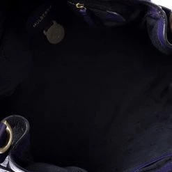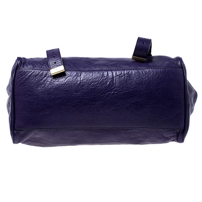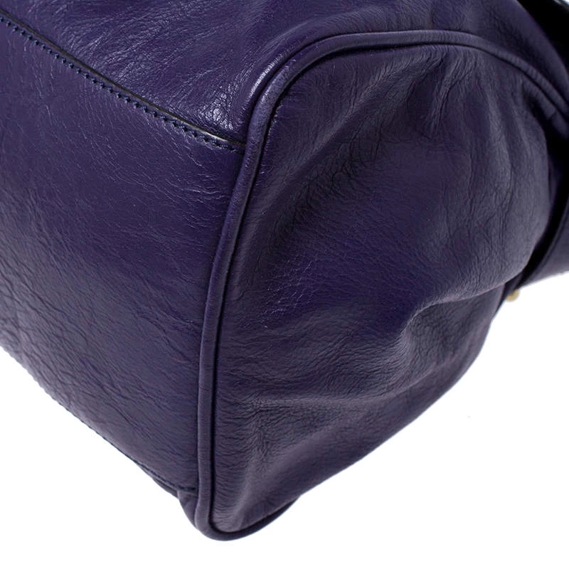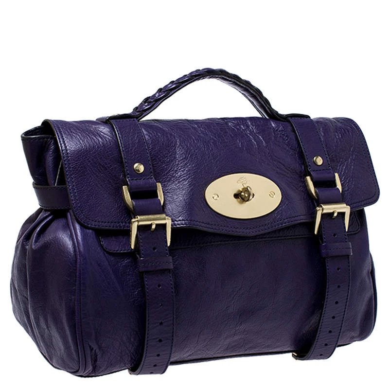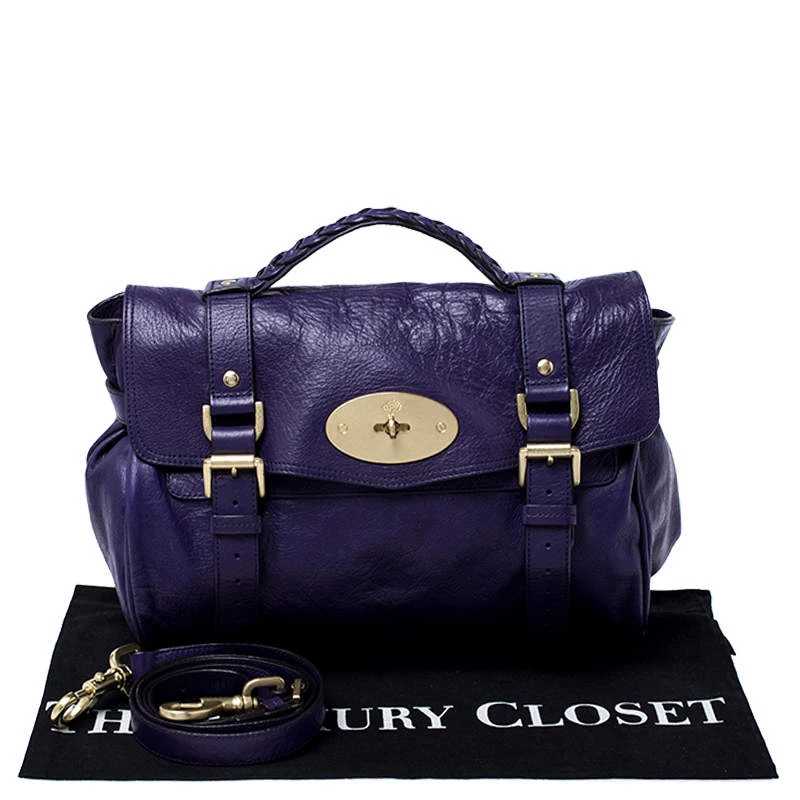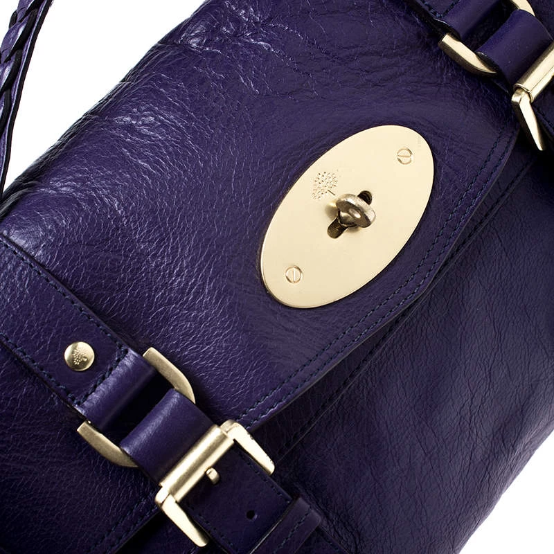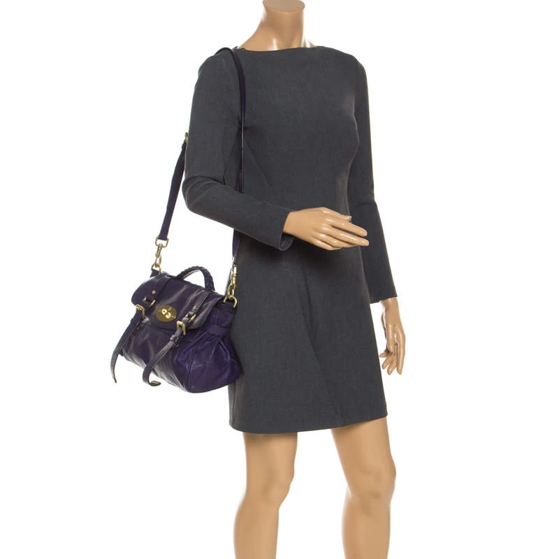 Mulberry brings you this handy bag that will dutifully support you wherever you go. It has been crafted from leather in a purple shade and equipped with a twist lock on the flap that secures a spacious fabric interior capable of holding all your necessities. It is held by a single handle and a detachable shoulder strap.