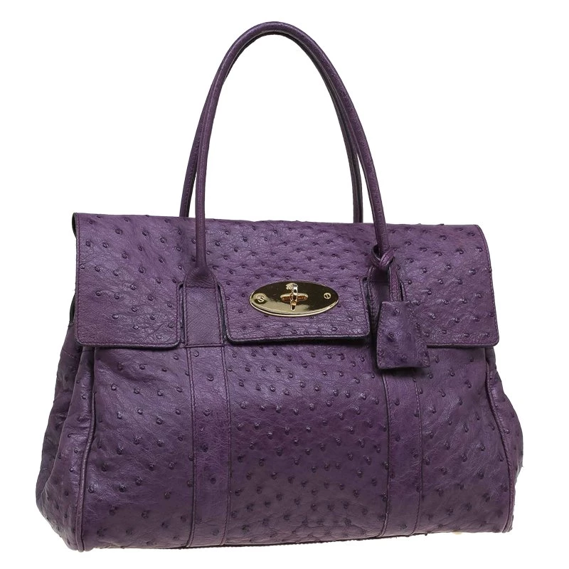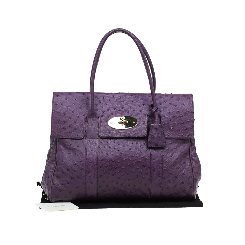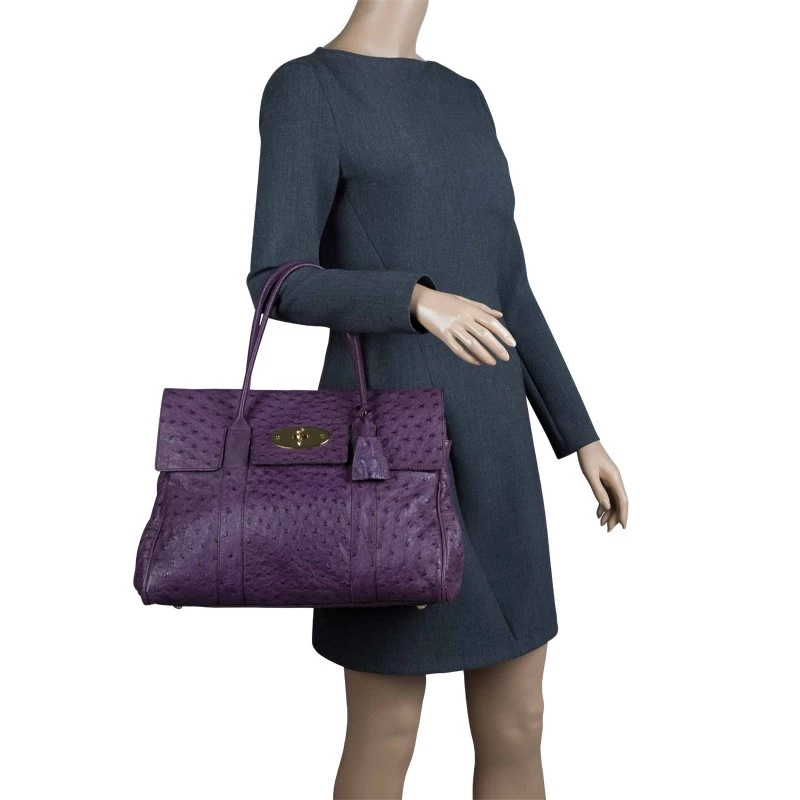Masterfully crafted from the house of Mulberry, this ‘Baywaster’ satchel is sure to make a lasting impression. Crafted in ostrich leather in a beautiful purple hue, this bag is decorated with the signature postman’s lock fastening front flap. Perfectly sized to carry work essentials, this bag is sure to make a few heads turn.