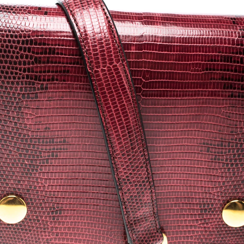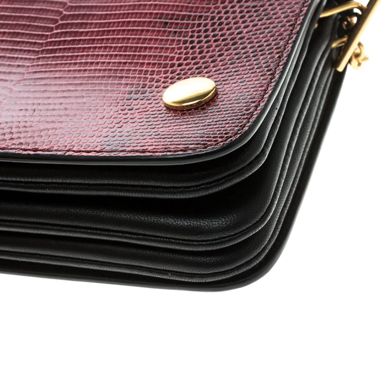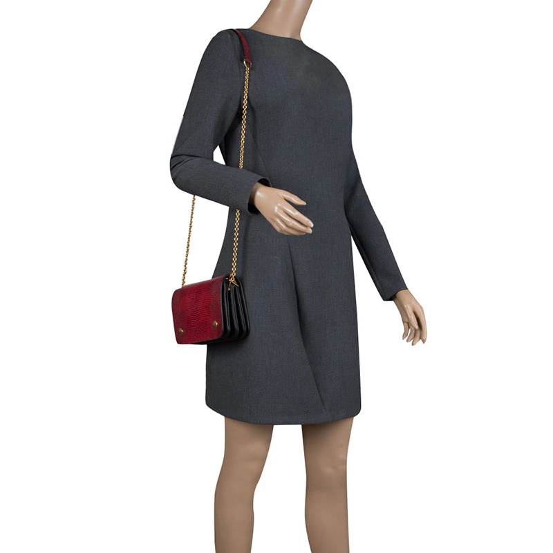 Sometimes you don’t just purchase, you invest. As in the case of this stunning bag by Mulberry. Crafted from a bold red leather, the bag is equipped with a chain link strap that features a leather shoulder rest. The front flap closure opens up to three suede lined zipped compartments.