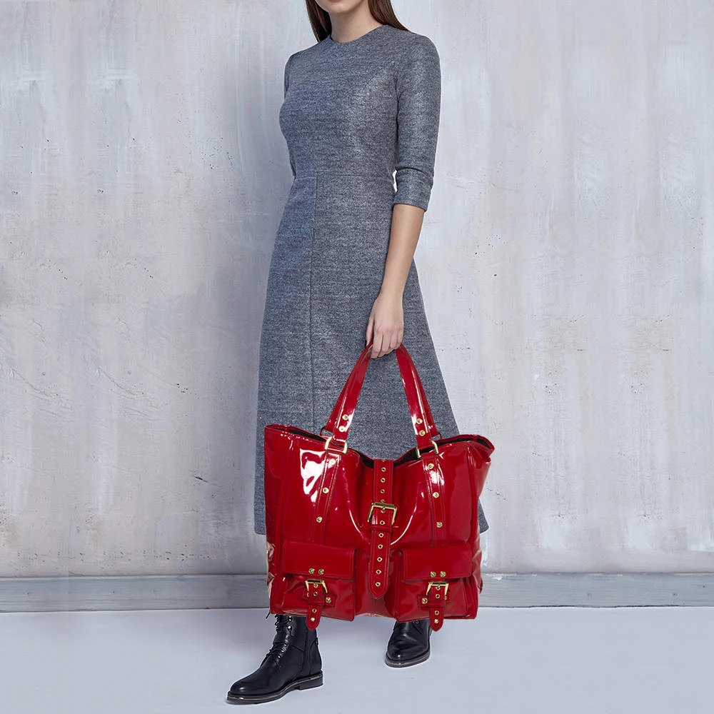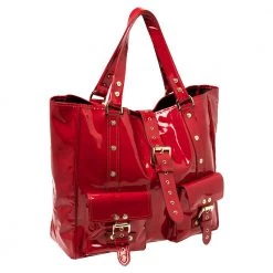 Created in patent leather, this Mulberry Roxanne tote is an ideal everyday choice. The canvas-lined interior of this bag is sized to hold all your basics comfortably. The red exterior is detailed with flap pockets and the main compartment is secured by a buckle strap.