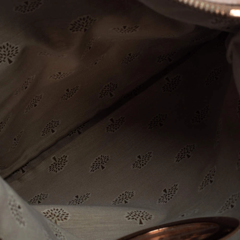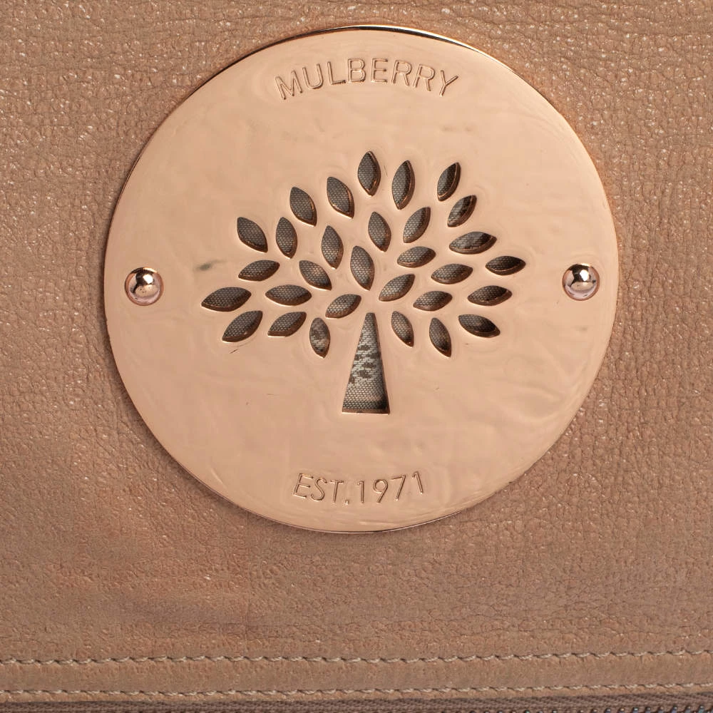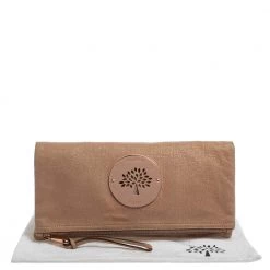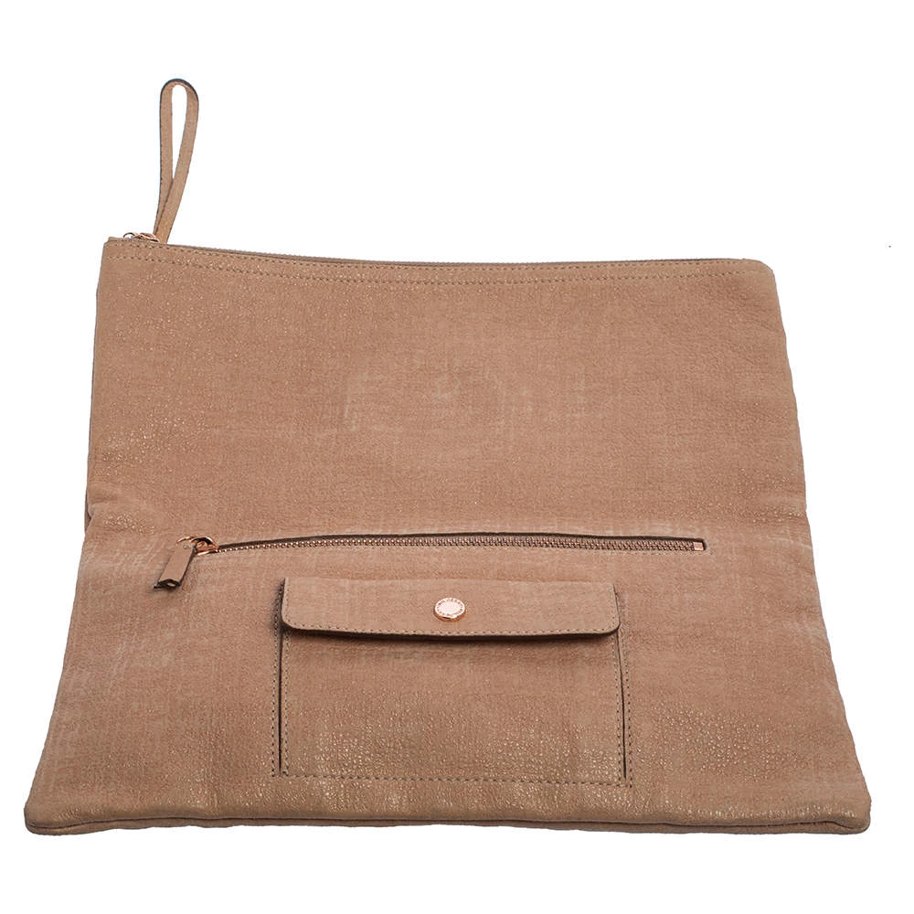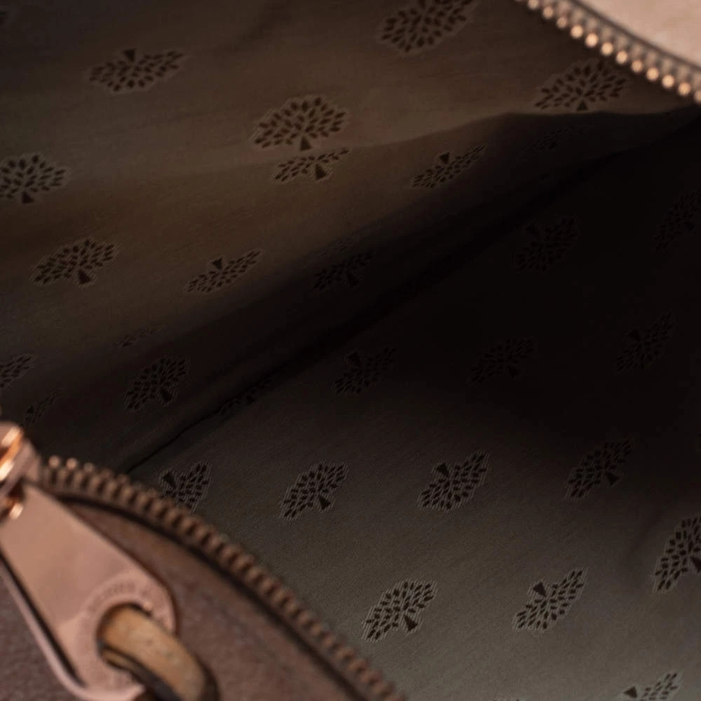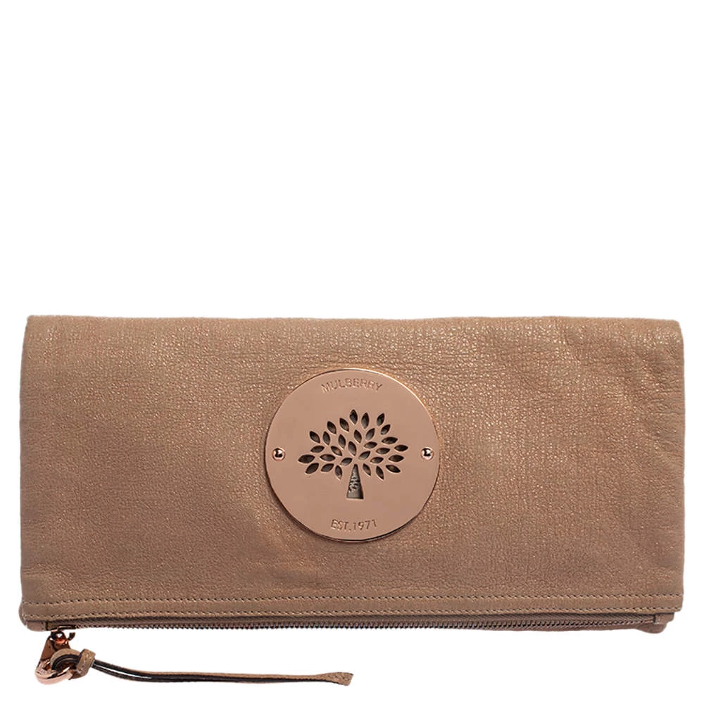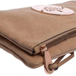 Mulberry brings you this gorgeous clutch that has been crafted from shimmer nubuck leather and styled as a fold-over design. It carries a rose gold hue, a fabric interior, and the logo detail on the front. The Daria clutch is complete with a wrist strap.