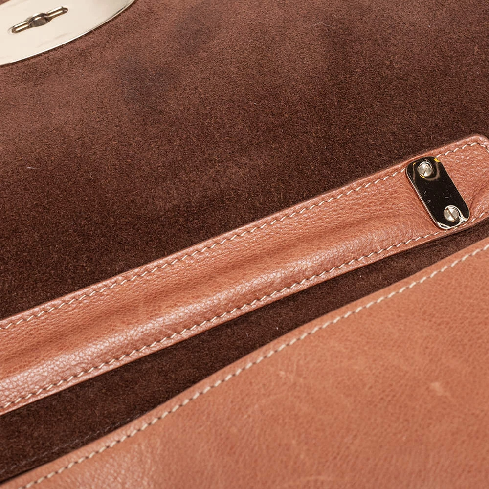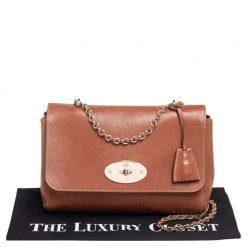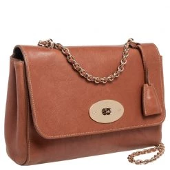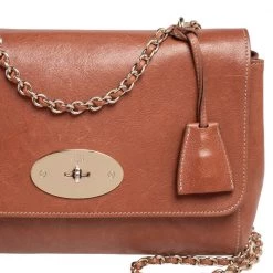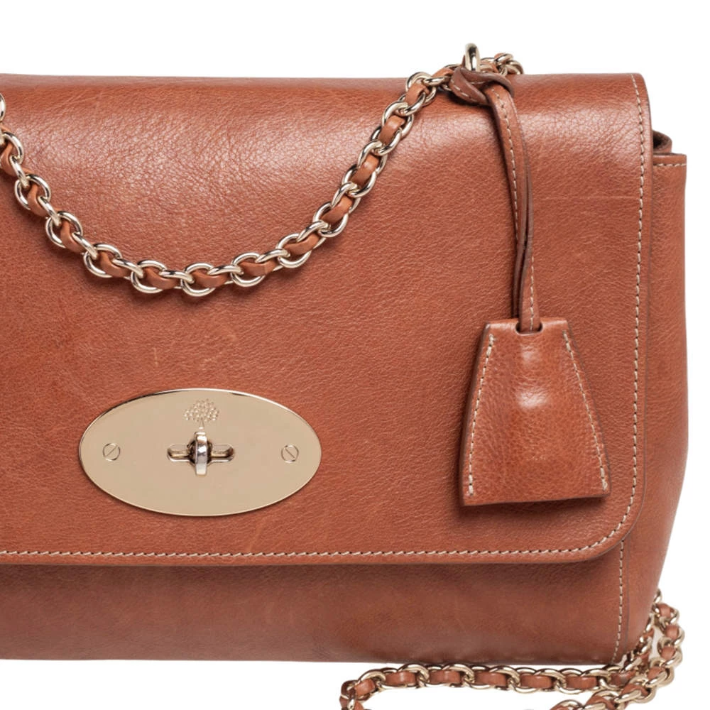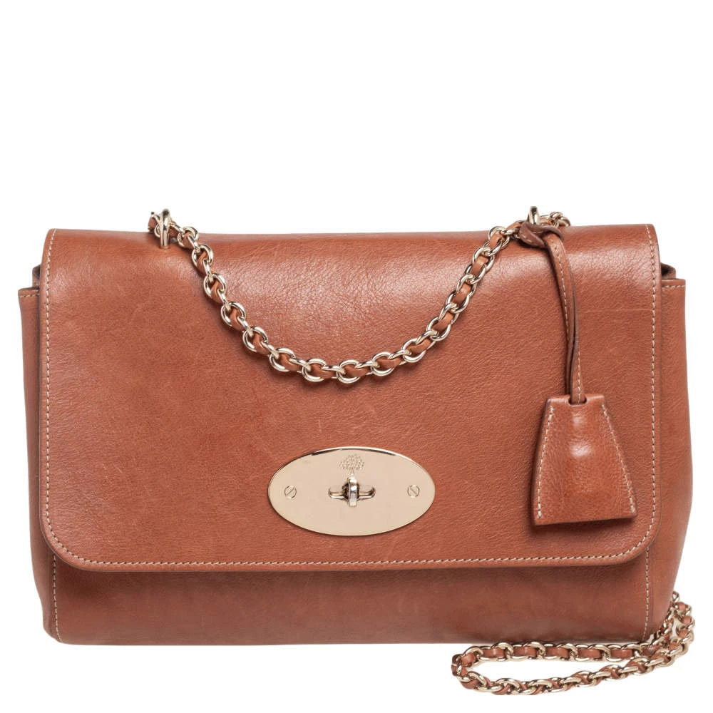 This Mulberry leather Lily shoulder bag is effortlessly elegant and will match any outfit. It features a chain strap and a smooth tan leather exterior. The popular post-man lock-in gold-tone hardware sits at the front on the flap. The spacious interior is lined with suede.