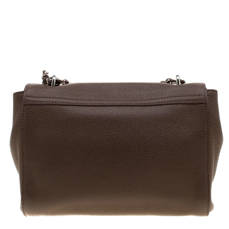This Mulberry Lily bag is lovely. Crafted from leather, the tan bag comes with a chain and leather woven strap. It has a postman’s lock and the front flap opens to a suede lined interior. Carry it to all your fashionable outings and let it do all the talking!