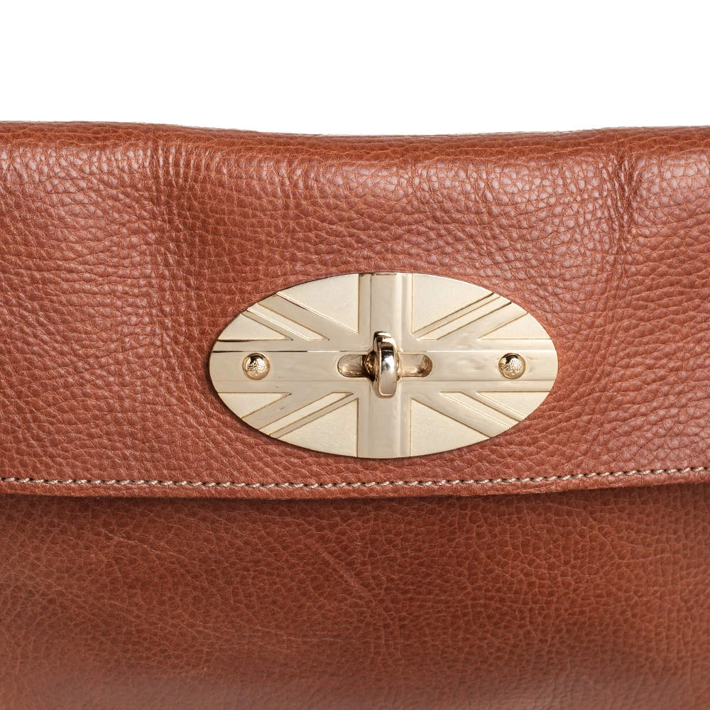 You can never go out of style with this gorgeous Mulberry clutch. It is made from leather in a flap style and is secured with a gold-tone union jack turn-lock at the front.