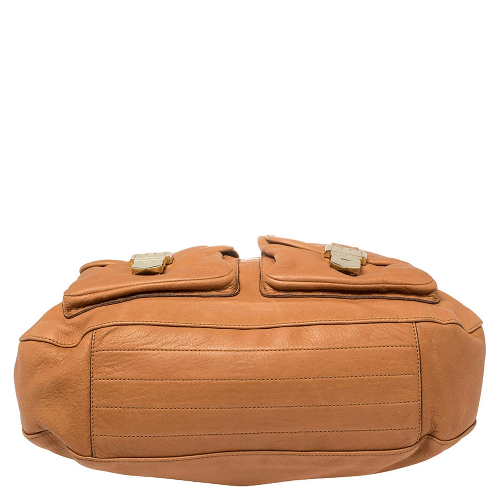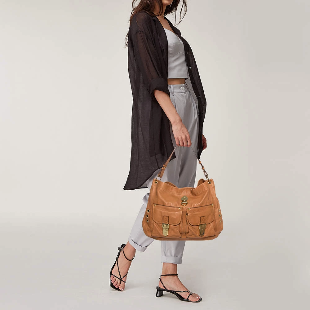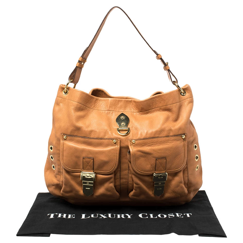Designed to be practical and stylish, Mulberry’s hobo arrives in soft leather. The tan bag has pockets on the front, a single flat handle,gold-tone hardware, and a spacious fabric interior to hold the things you need.