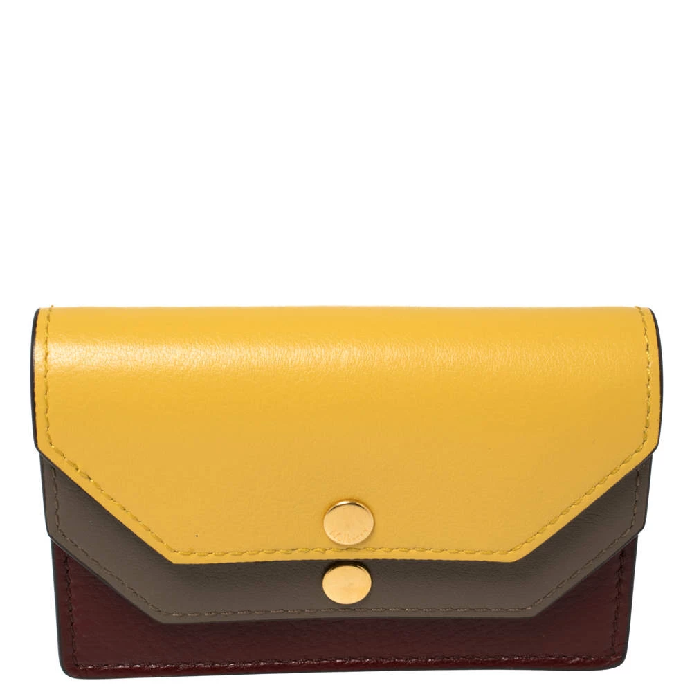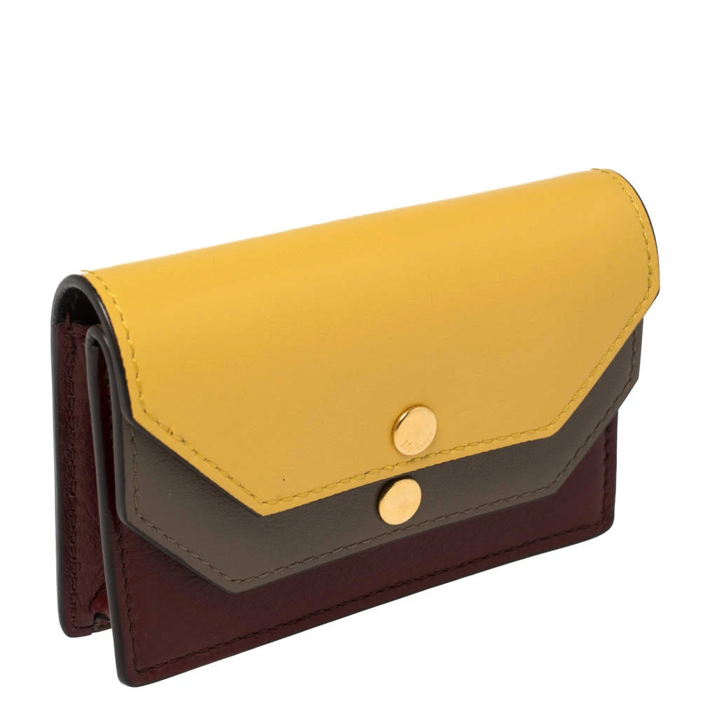 Hold your important cards safely and in a stylish manner using this Mulberry tricolor card case. Sewn using leather, the creation has a dual flap design, lined slots, and a smooth finish.