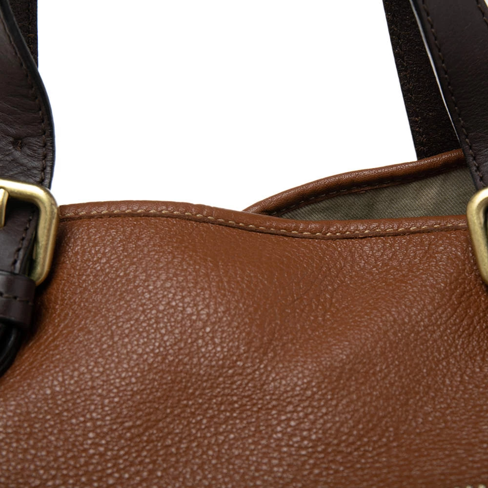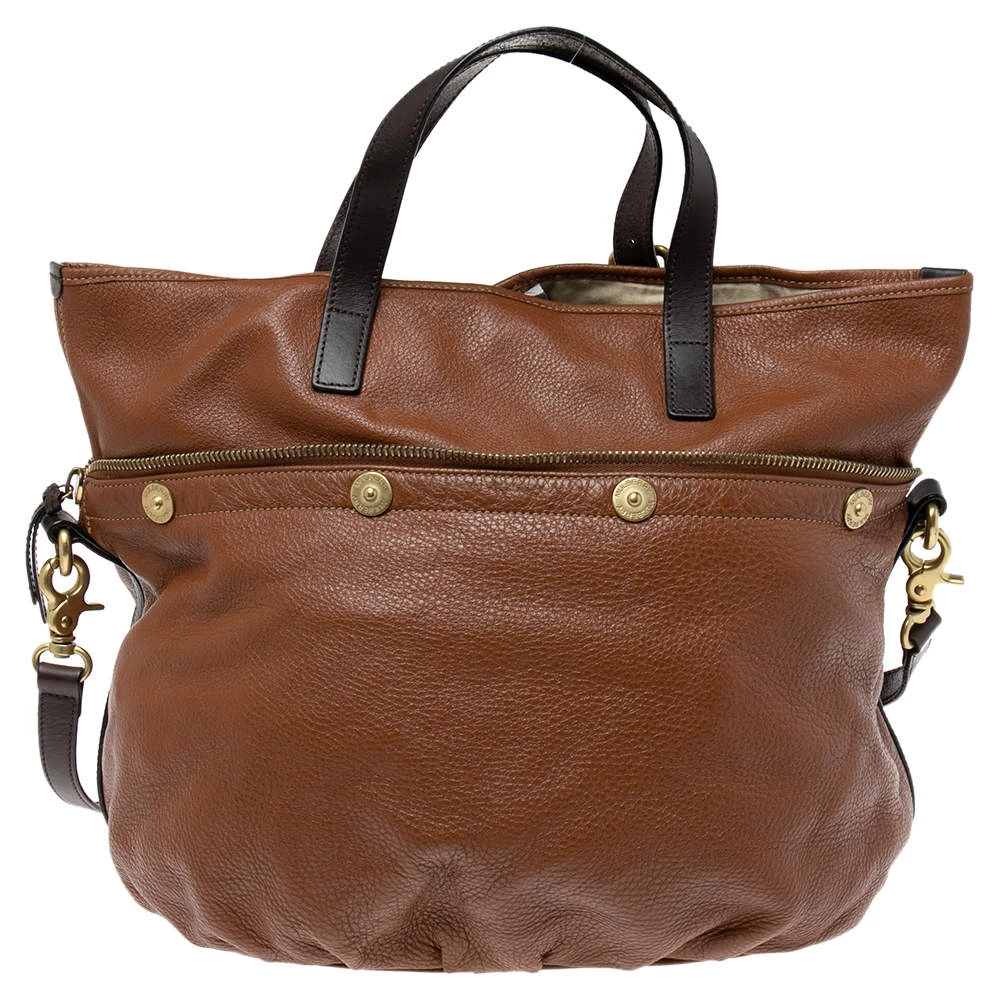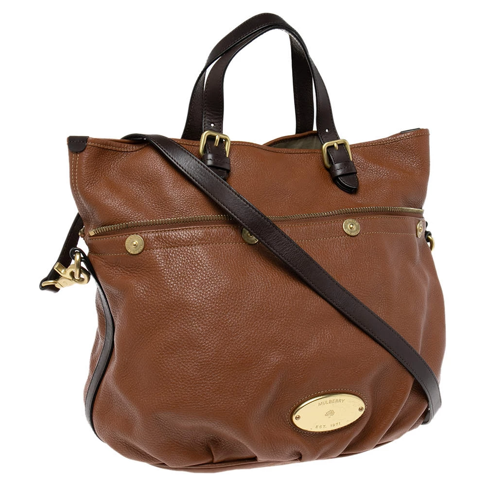 This versatile tote from Mulberry features a unique slouchy design. This tote is crafted from soft leather in dual tones of brown and finished with gold-tone studs, a top exposed zipper, and a metal logo plaque. The canvas-lined interior houses one zip and one patch pocket for holding your essentials intact.